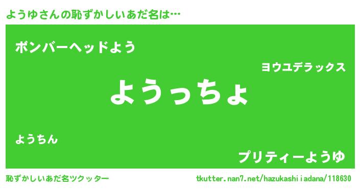 | ヘコむあだ名 | 『なまこ酢』『ようふぇ~』『ようを』 |