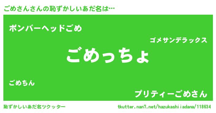 | ヒーロー風カッコイイあだ名 | 『ウルトラごめさんマン』『ネオゴメサン』 |