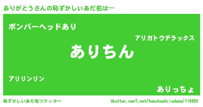 | 意味不明あだ名 | 『住所不定無職ありがとう(6歳)』 |