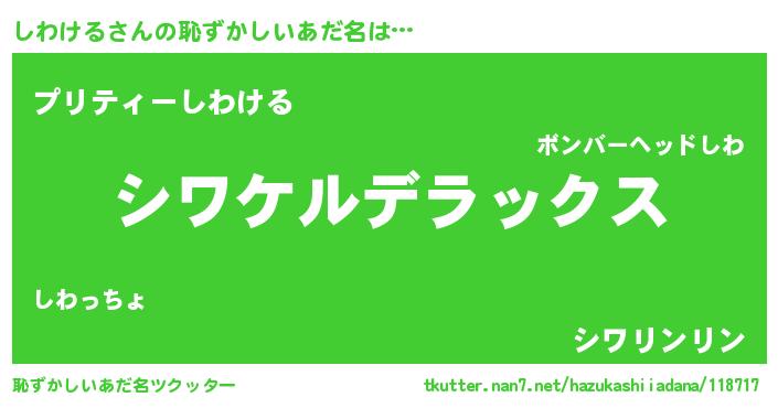 | ヒーロー風カッコイイあだ名 | 『最強戦士シワケル』『スーパーシワケル』 |