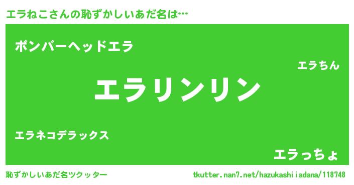 | 女子向けラノベタイトル風あだ名 | 『エラねこ様がみてる』『エラねこ恋絵巻』 |