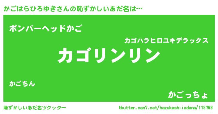 | 男性向けラノベタイトル風あだ名 | 『転生したらかごはらひろゆきだった件』 |