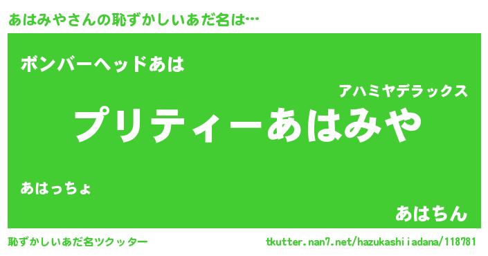 | 意味不明あだ名 | 『ペロリンあはみや』『永久保存あはみや』 |