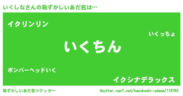 | ヘコむあだ名 | 『いくしな(小並感)』『いく太郎』 |