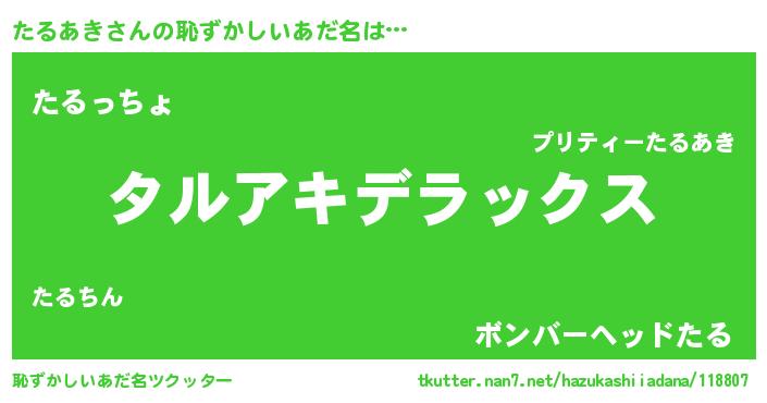 | 胡散臭い通販商品みたいなあだ名 | 『あなたにだけ特別に提供する世界で10本だけ現存している希少なブランデー…その名も「たるあき」』 |