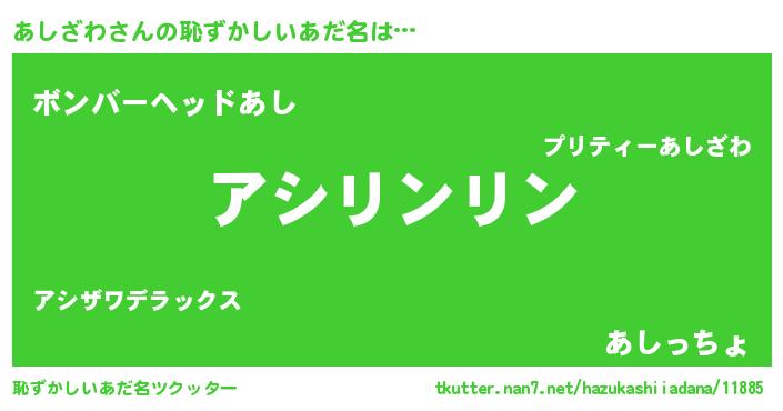 | 男性向けラノベタイトル風あだ名 | 『この素晴らしい世界にあしざわを!』 |