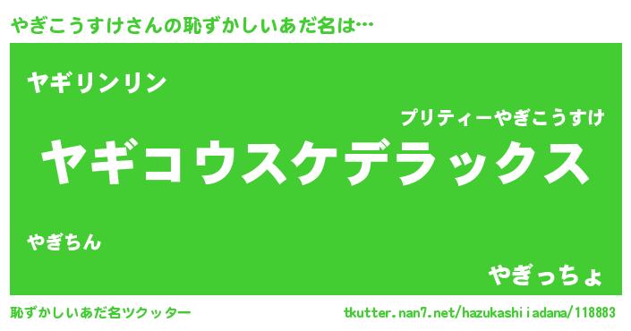 | ポケモン風あだ名 | 『ヤギセウス』『ヒヤギコウスケ』 |
