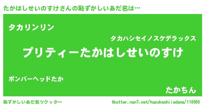 | 胡散臭い通販商品みたいなあだ名 | 『モテモテ間違いなし霊験あらたかなお札…その名も「たかはしせいのすけ」』 |