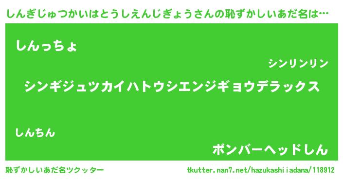 | 意味不明あだ名 | 『住所不定無職しんぎじゅつかいはとうしえんじぎょう(6歳)』 |