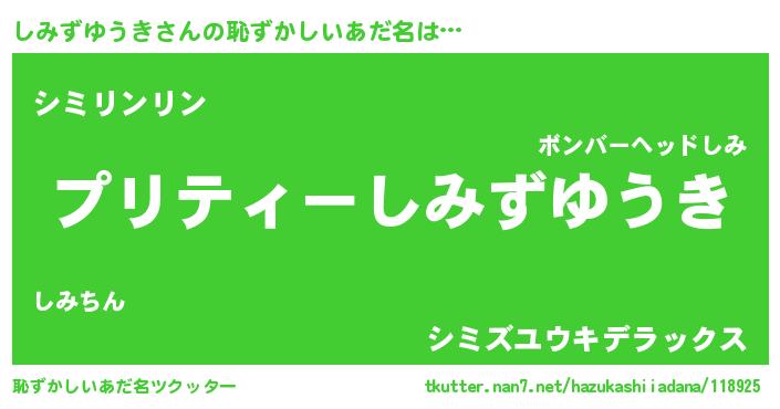 | 意味不明あだ名 | 『住所不定無職しみずゆうき(1歳)』 |