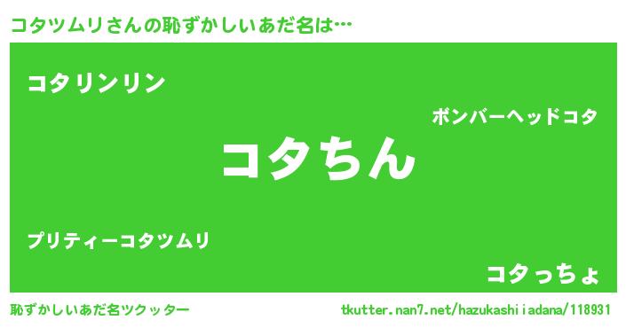 | ヒーロー風カッコイイあだ名 | 『仮面コタダー』『ネオコタツムリ』 |