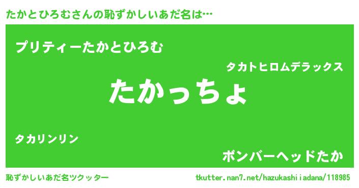 | ヒーロー風カッコイイあだ名 | 『仮面タカダー』『スーパータカトヒロム』 |