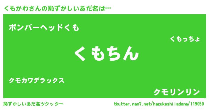 | ヒーロー風カッコイイあだ名 | 『ネオクモカワ』『慈愛の使者くもかわ』 |