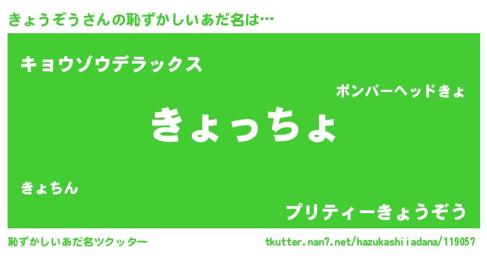 | 意味不明あだ名 | 『きょうぞうフォーエバー』 |