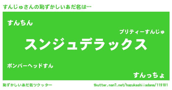 | 意味不明あだ名 | 『自称すんじゅ』『永久保存すんじゅ』 |