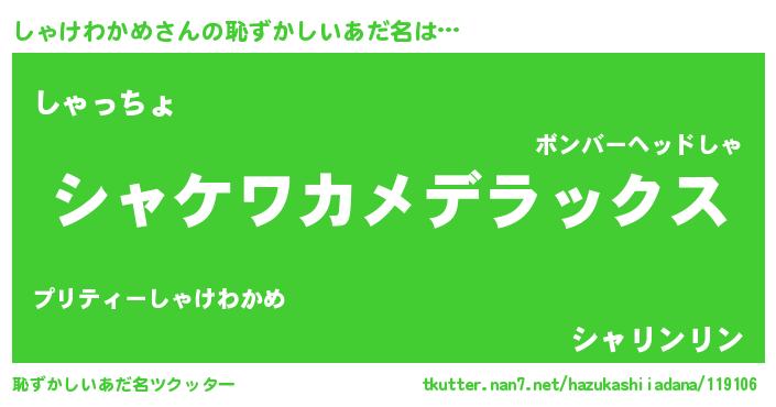 | ヒーロー風カッコイイあだ名 | 『仮面シャダー』『最強戦士シャケワカメ』 |
