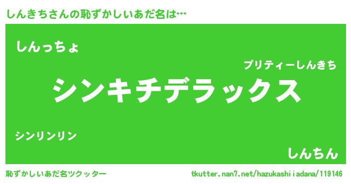 | 男性向けラノベタイトル風あだ名 | 『Re:しんきちから始める異世界生活』 |