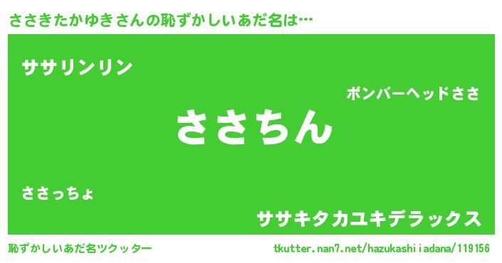 | 可愛いあだ名 | 『ささぷりん』『ささきたかゆきママ』 |