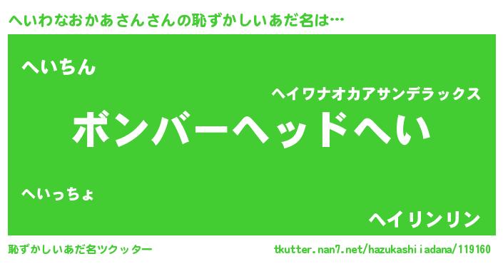 | ヘコむあだ名 | 『へいわなおかあさん(小並感)』『へいを』 |