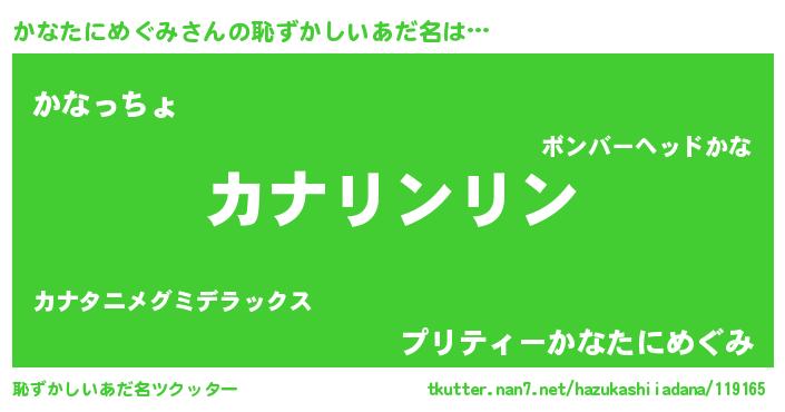 | 男性向けラノベタイトル風あだ名 | 『かなたにめぐみの嫁は女の子じゃないと思った?』 |