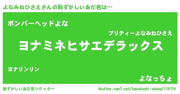| 意味不明あだ名 | 『自称よなみねひさえ』 |