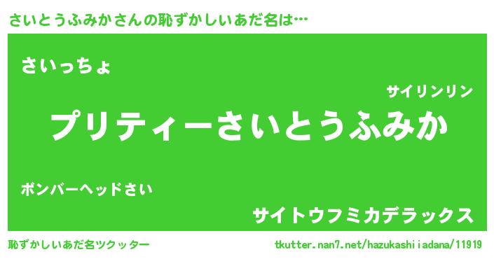 | ヒーロー風カッコイイあだ名 | 『スーパーサイトウフミカ』 |