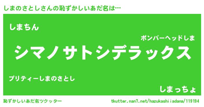 | 意味不明あだ名 | 『自称しまのさとし』 |