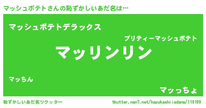 | 意味不明あだ名 | 『とにかく怪しいマッシュポテト』 |