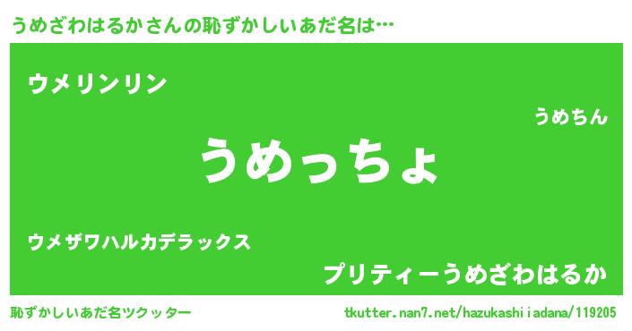 | ヘコむあだ名 | 『なまこ酢』『うめ太郎』『うめもー』 |