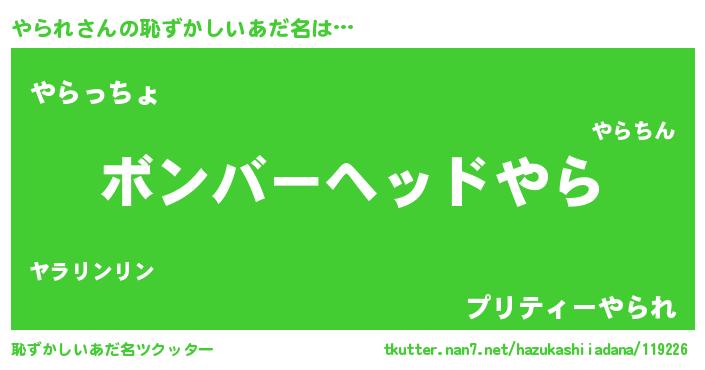 | 男性向けラノベタイトル風あだ名 | 『ヤラレスレイヤー』『やられの憂鬱』 |