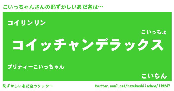 | ヘコむあだ名 | 『こいっ子』『こいっちゃん(苦笑)』 |