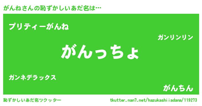 | 2回繰り返すあだ名 | 『んごんご』『ががんん』『がんがん』 |
