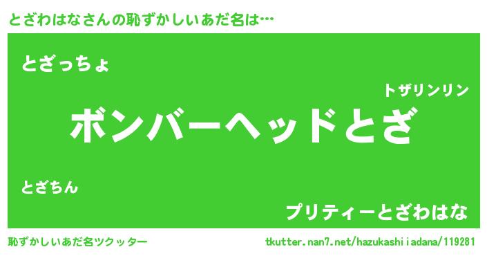 | 意味不明あだ名 | 『住所不定無職とざわはな(56歳)』 |