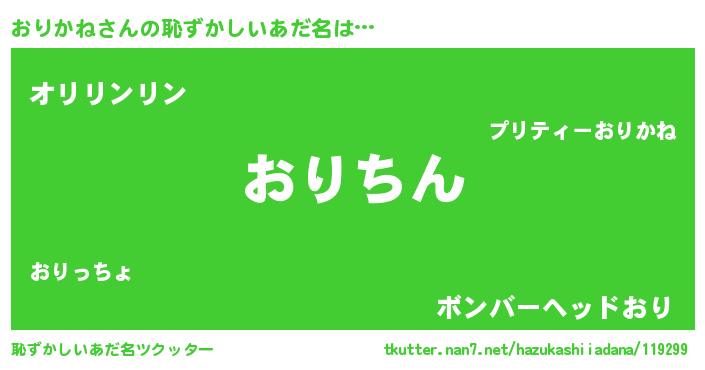 | ヘコむあだ名 | 『おりかね(笑)』『おりを』 |
