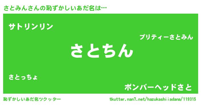 | ヘコむあだ名 | 『さとみん(爆)』『さとっちょ』 |