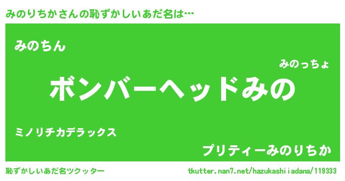 | ヘコむあだ名 | 『みのりちか(爆)』『みのっふぃ~』 |