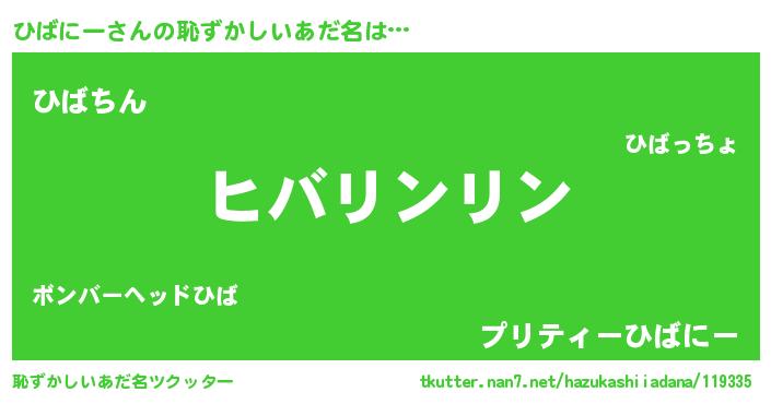 | ヘコむあだ名 | 『ひばぷりん』『ひばにー(小並感)』 |