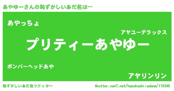 | ポケモン風あだ名 | 『アヤチュウ』『アヤユダネ』 |