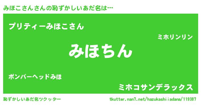 | 男性向けラノベタイトル風あだ名 | 『この素晴らしい世界にみほこさんを!』 |
