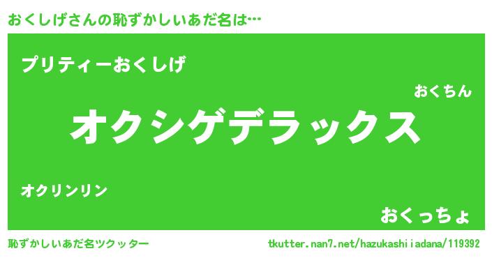 | 男性向けラノベタイトル風あだ名 | 『Re:おくしげから始める異世界生活』 |