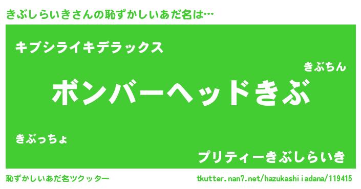 | 意味不明あだ名 | 『住所不定無職きぶしらいき(91歳)』 |