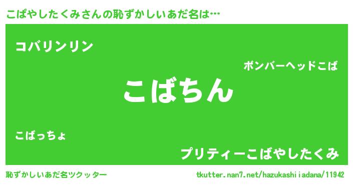 | ヘコむあだ名 | 『こばやしたくみ(笑)』『こばっぺ』 |