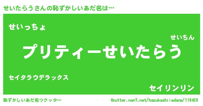 | 男性向けラノベタイトル風あだ名 | 『せいたらうの憂鬱』『緋弾のセイタラウ』 |