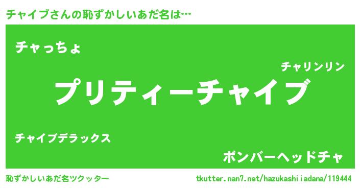 | 男性向けラノベタイトル風あだ名 | 『チャイブの憂鬱』『チャイブスレイヤー』 |