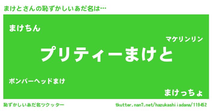 | 意味不明あだ名 | 『ペロリンまけと』『永久保存まけと』 |