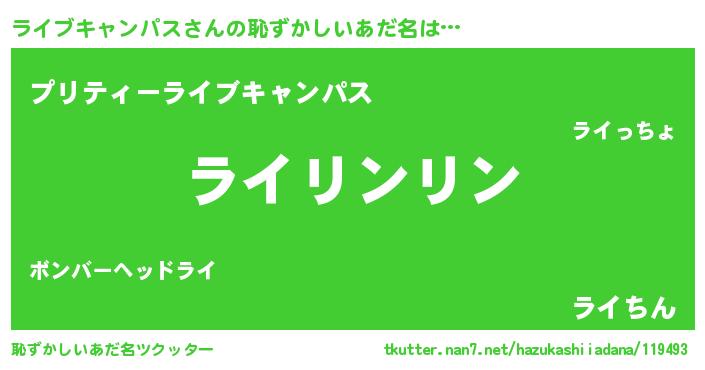 | 意味不明あだ名 | 『とにかく怪しいライブキャンパス』 |