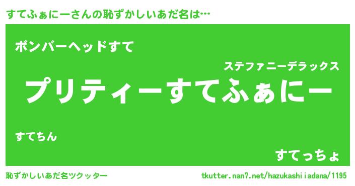 | 意味不明あだ名 | 『住所不定無職すてふぁにー(62歳)』 |