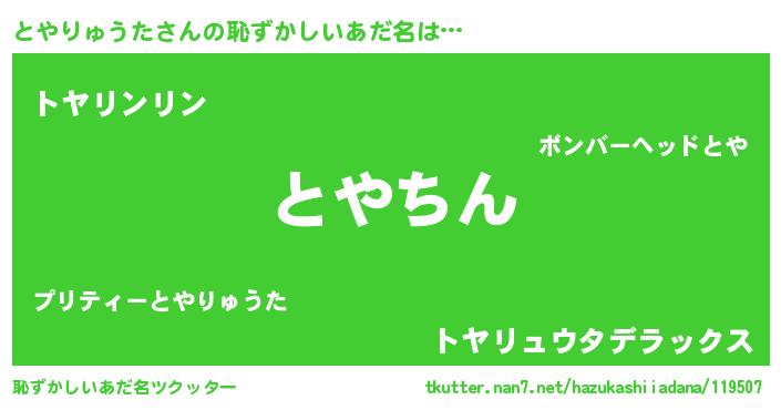 | 男性向けラノベタイトル風あだ名 | 『とやりゅうたという概念が存在しない退屈な世界 』 |