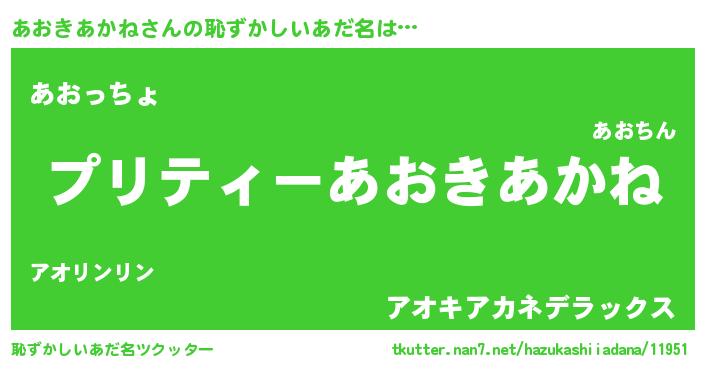 | 男性向けラノベタイトル風あだ名 | 『あおきあかねに滅ぼされるだけの簡単なお仕事です』 |