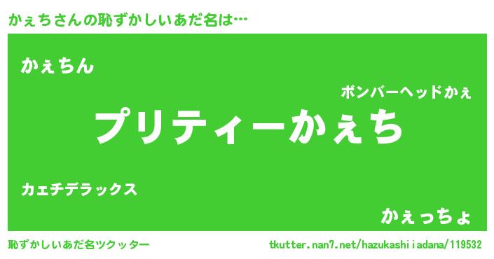 | 意味不明あだ名 | 『ペロリンかぇち』『しいたけ科かぇち属』 |